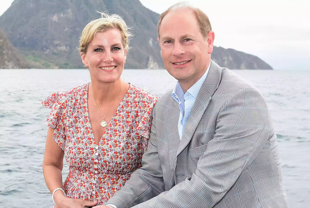 Prince Edward and his wife Sophie on their Platinum Jubilee Royal Tour of the Caribbean on April 27, 2022 in Soufriere, Saint Lucia.
