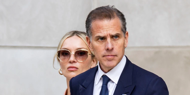 Hunter Biden, left, departs from federal court with his wife, Melissa Cohen Biden, Wednesday, in Wilmington, Del., on June 5, 2024.