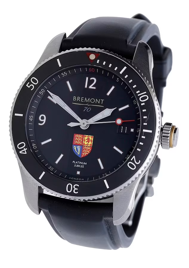 The luxury Bremont Supermarine S300 timepiece boasts the royal coat of arms on its face and the cypher of Queen Elizabeth II on the reverse.