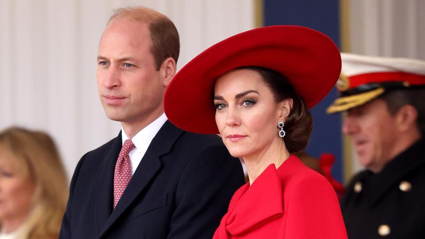 LONDON, ENGLAND – NOVEMBER 21: Prince William, Prince of Wales and Catherine, Princess of Wales attend a ceremonial welcome for The President and the First Lady of the Republic of Korea at Horse Guards Parade on November 21, 2023 in London, England. King Charles is hosting Korean President Yoon Suk Yeol and his wife Kim Keon Hee on a state visit from November 21-23. It is the second incoming state visit hosted by the King during his reign.